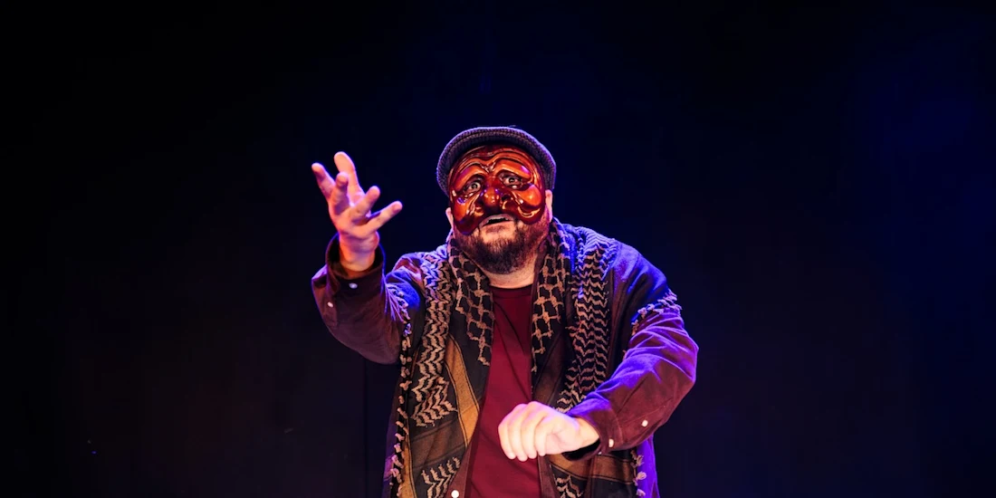Performing on a bare stage, a table of masks to one side and floor mic to the other, Shehada tells his tale from the beginning, from infancy through to schooldays, and charting his burgeoning friendship with a classmate called Ahmad.
