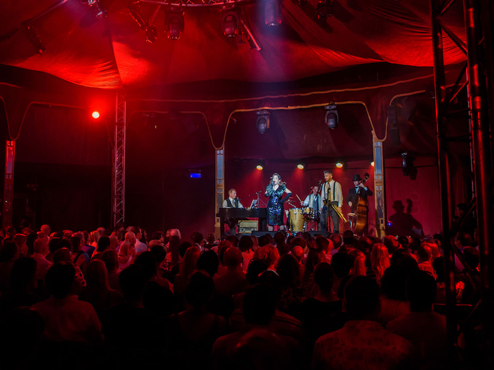Show stopping vocals, sensational band, stunning costumes and spectacular tap dancing - for one night only Miss Kiddy and the Cads' Vintage takeover brings the swinging speakeasy to the Spiegeltent!
