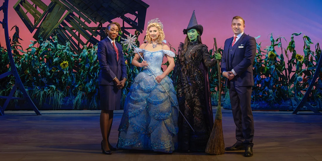 Photo credit: Avios representatives with the cast of Wicked. (Courtesy of TodayTix)