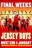 Jersey Boys is at the Trafalgar Theatre in London. The Trafalgar Theatre is located on Whitehall. It's close to the Garrick Theatre.